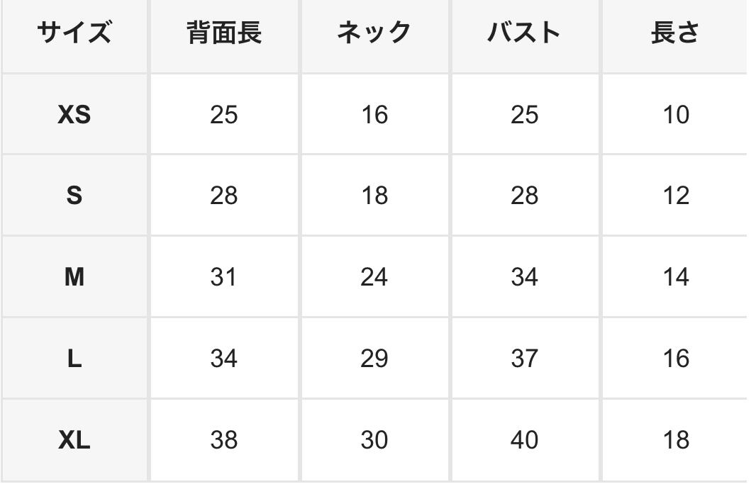 サイズ XS / S / M / L / XL